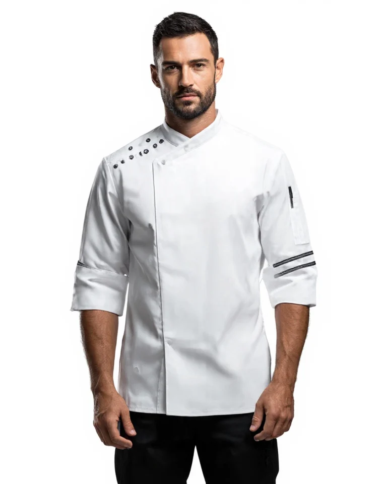 The Chef Coat is crafted for culinary professionals who demand both comfort and style in the kitchen. Designed with high-quality breathable cotton, it ensures ease of movement and durability during long working hours. With its modern tailoring and professional appearance, the Chef Coat enhances confidence while maintaining functionality. Elevate your kitchen wear by shopping at omsaifashion, where premium quality meets practical design.